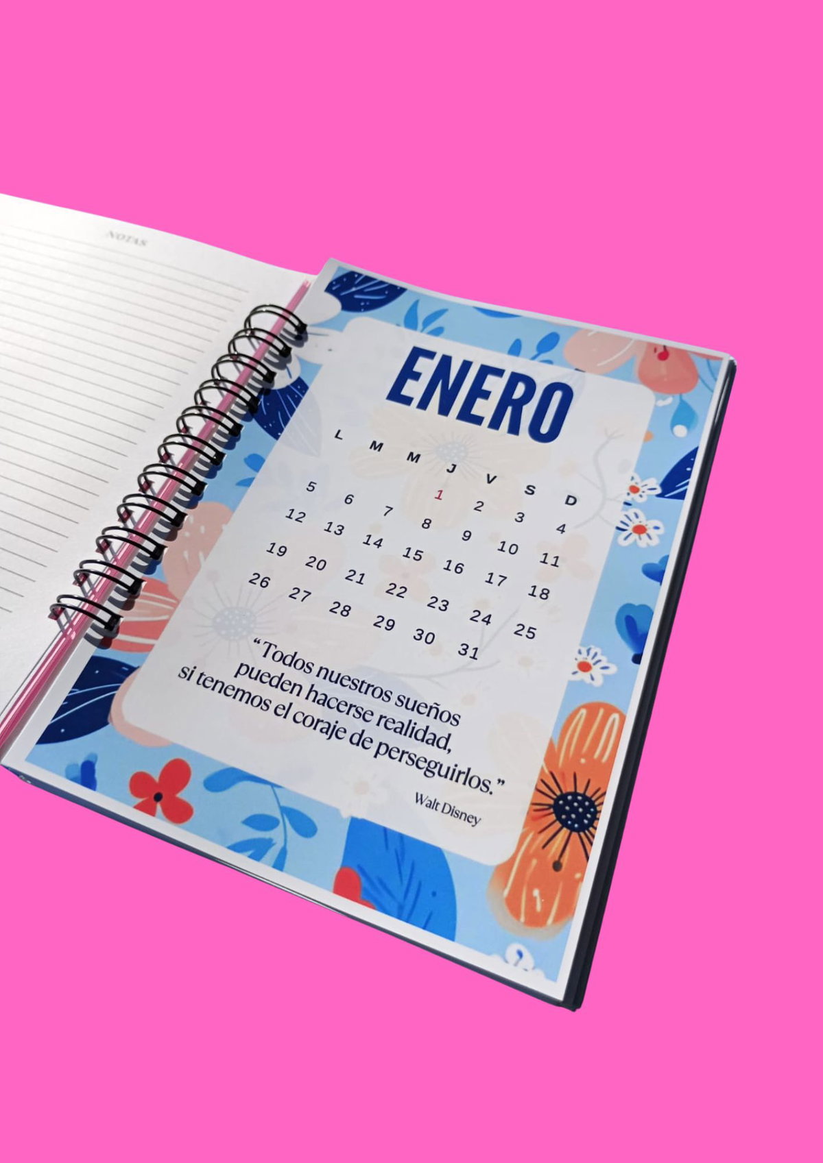 La agenda puede ser con el diseño de tapas predeterminadas (expuesto en la pagina) o personalizadas con tu logo, frase, nombre e imagen que desees.