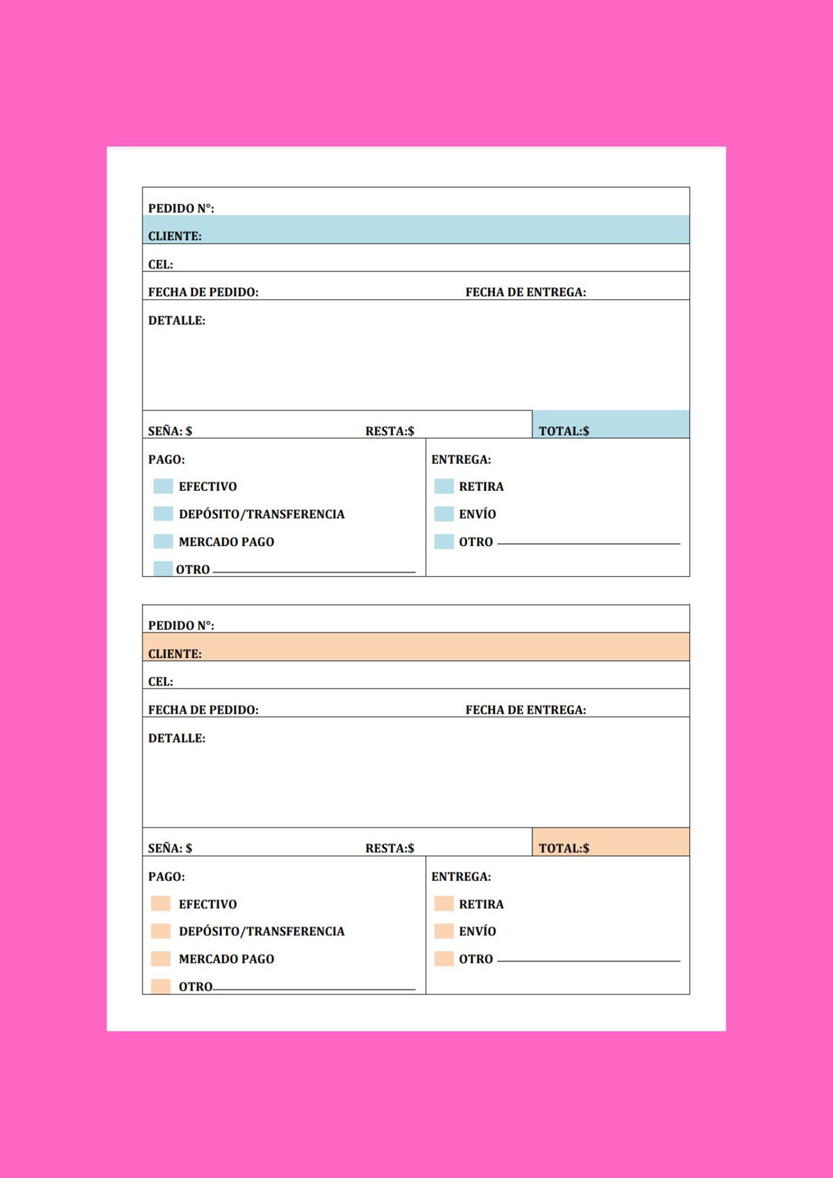 -Hojas de pedidos (2 pedidos por carilla)