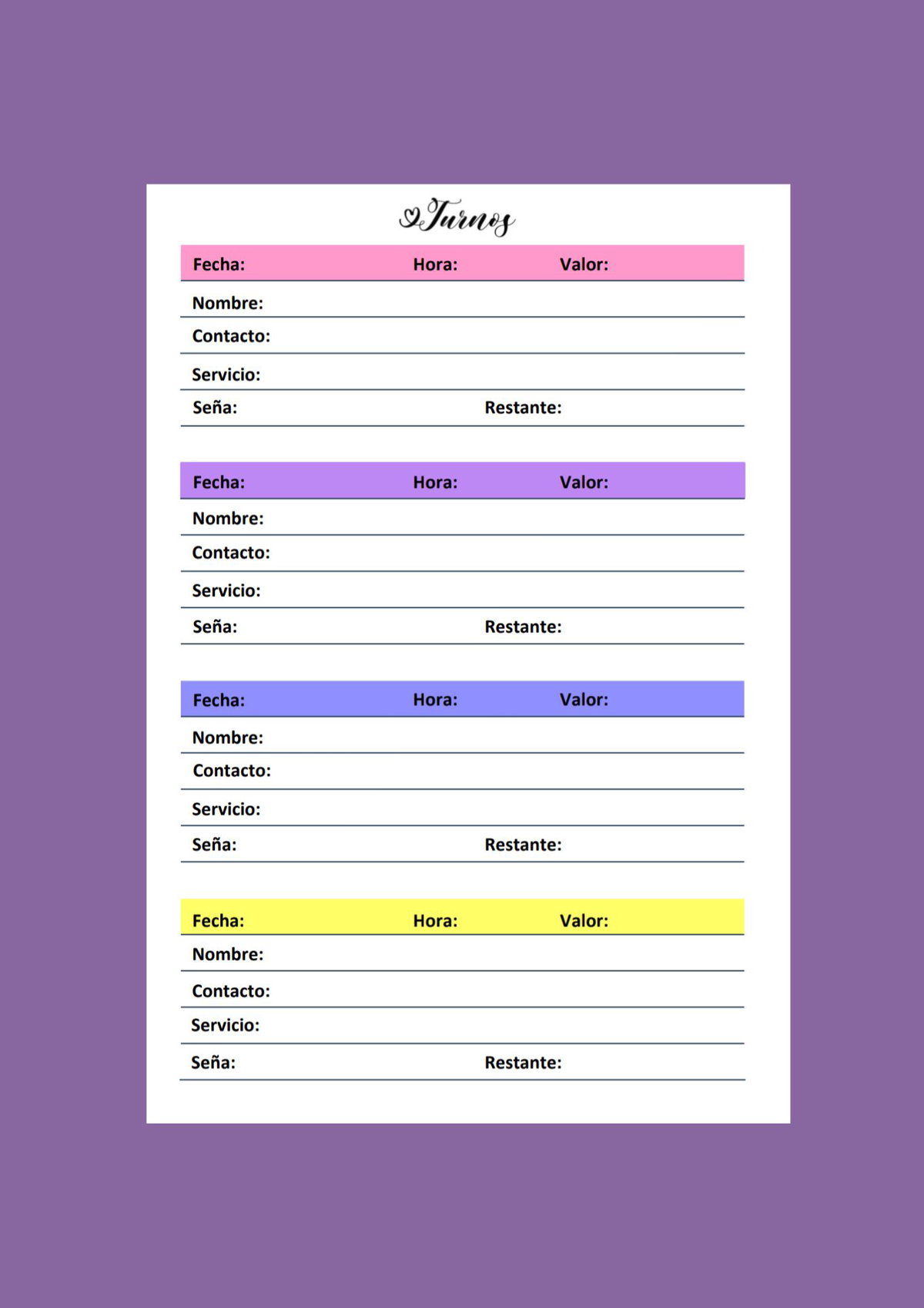El cuaderno para turnos se realiza con tapas personalizadas con tu logo, frase, nombre e imagen que desees.