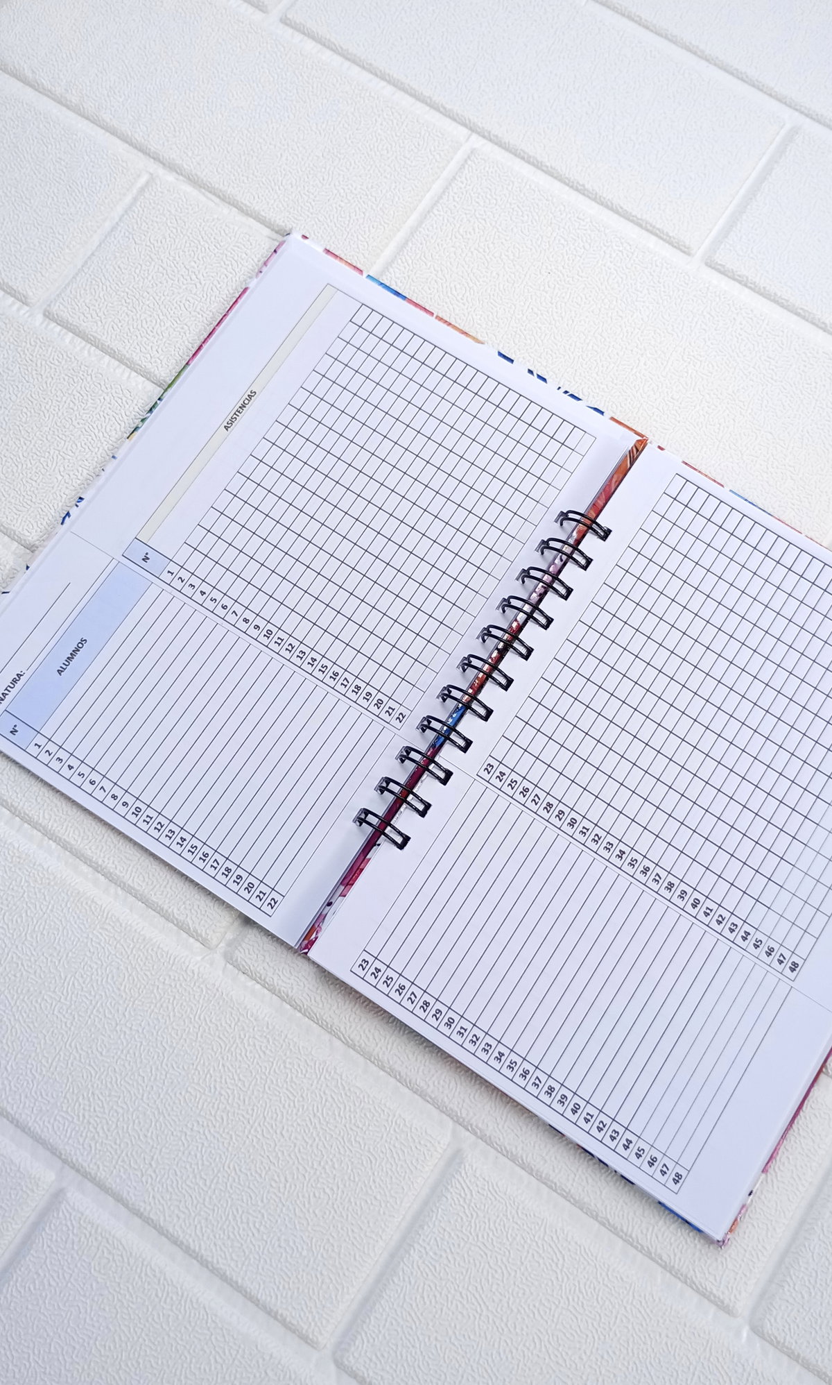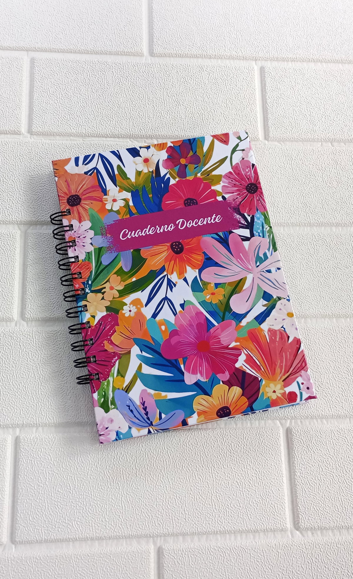 El cuaderno docerno puede ser con el diseño de tapas predeterminadas (expuesto en la página) o personalizadas con tu logo, frase, nombre o imagen que desees.